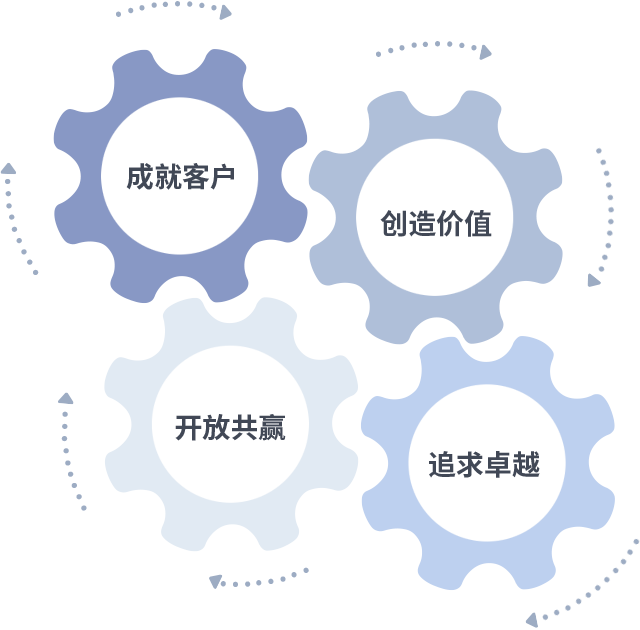 成就客户是一切决策的出发点,创造价值是衡量所有工作的标准,追求卓越是88BIFA做事做人的态度,开放共赢是88BIFA的格局也是最终的结果。价值观的齿轮环环相扣,推动着组织里的每个人不断向前。